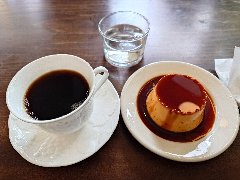 門前仲町駅から3分ほど、門前仲町交差点の北側の路地にあります。2階建ての古い建物です。ガラス戸の外観です。店内は、カウンター席が4つ、狭いです。リノベされたシンプルな内装です。音楽小さめ、のんびりムードです。お冷ではなく温かいレモン水が出されます。ホットコーヒー(500円)とプリン(350円)を注文しました。コーヒーは目の前でハンドドリップで淹れます。バランスいいです。プリンは柔らかめ、カラメルはやや甘めでした。美味しかったです。他には、各種ドリンク、ホットサンドイッチ、パウンドケーキなどがありました。 |