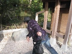 鎌倉宮の厄割り石 (盃を石にぶつけて割り厄を落とします) |