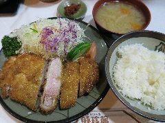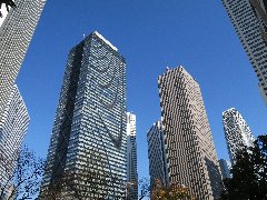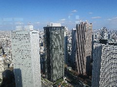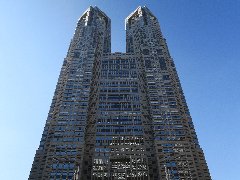 | 先ずは西新宿にある「豚珍館」で朝ご飯。行列が出来る人気店です。 | 「豚珍館」のロースかつ(上)です。分厚いトンカツ、これで1050円は安いです。 | 西新宿の高層ビル群、空がきれいです。 | 東京都庁、あっ、天気がいいので無料展望室に行ってみよう。 |