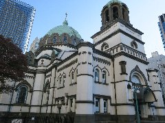 | 神田、「裏神田 自然生村」の大粒カキフライ膳、自然薯とろろが付きます。 | 神田、「ほうきぼし+」の汁なし坦担麺。 | 御茶ノ水、ニコライ堂、明治24年に出来た建物だそうです。 | 御茶ノ水、聖橋からの風景、神田川の上に丸の内線、その上に中央線。 |