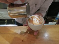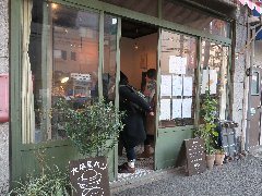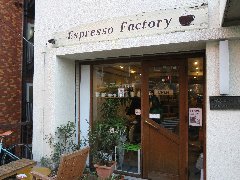 | 千駄木、「エスプレッソ ファクトリー」の洒落た外観。 | 「エスプレッソ ファクトリー」のカフェラテ、作るところを見せてくれました。 | 「エスプレッソ ファクトリー」のカフェラテとアーモンドタルト。 | 根津神社の楼門。立派な建物です。 |