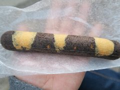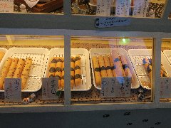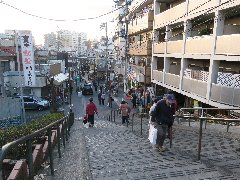 | 谷中ぎんざ、「やなかしっぽや」の猫のしっぽ型ドーナツ。 | 「やなかしっぽや」のとら、一番人気だそうです。 | 谷中ぎんざにいた猫、全く逃げません。 | 谷中ぎんざに続く階段、けっこう有名な階段ですね。 |