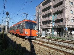 | 先ずは朝食、下高井戸「中華そば ばんや」の味付け玉子そば、美味しいです。 | 東急世田谷線、2両編成です。 | 東急世田谷線、いろいろな色の車両があります。 | 松原、「サーティカレー松原」の渾身の特製ビーフカレー、ご飯の配置が微妙です。 |