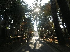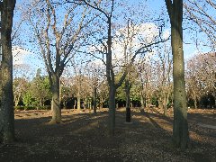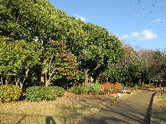 | 松陰神社、この先に松陰先生の墓所があります。 | 松陰神社前、「ニコラス精養堂」のいろいろなパンと松陰饅頭。 | 駒沢公園、緑が豊富です。 | 駒沢公園、この辺りは冬枯れしていて寂しい感じです。 |