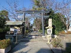 | 東急世田谷線、松陰神社前駅。 | 松陰神社の大鳥居、朱色ではなく黒い鳥居です。 | 松陰神社、吉田松陰先生像。 | 松陰神社の御社殿。大河ドラマで話題の割には空いていました。 |