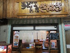 | 横須賀中央、「どん工房さぬき」の外観、薄暗い路地にあります。 | 「どん工房さぬき」のぶっかけうどん(並)と天ぷらいろいろ。 | 横須賀中央、「ヨコスカベーカリー」のパン、とても気さくな店員さんでした。 | 横須賀中央、「平八」の外観、暖簾も無く地味です。 |