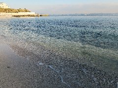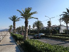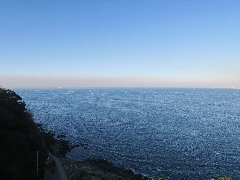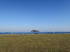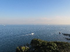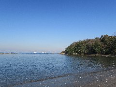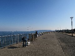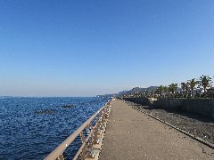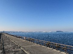 | 大津漁港、穏やかです。 | 国道16号のやしの木の並木、南国チックです。 | 馬堀海岸の海沿いの遊歩道、かなりの直線です。 | 馬堀海岸、結構歩いてきました。猿島がもうあんな遠くに。 |