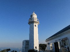 | 観音埼灯台、白亜のと灯台です。入場料を払うと上まで登れます。 | 観音埼灯台の巨大なレンズ。 | 観音埼灯台の上からの景色、東京湾を一望できます。 | 観音埼灯台の上からの景色、灯台の高さは19m、かなり怖いです。 |
