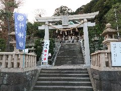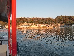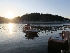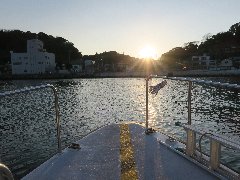 | 観音崎の浜辺、海が透き通ってます。 | 東叶神社、浦賀湾を挟んで西側にも叶神社があります。 | 浦賀の渡し、ボタンを押すと来てくれます。料金は200円です。 | 浦賀の渡し、夕日に向かって出航! |