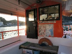 | 浦賀の渡し、船内はこんな感じです。13人乗りの小さな船です。 | 浦賀の渡し、気持ちいい〜 | 浦賀の渡し、乗船時間3分ほど、もう着いてしまいました・・・。 | 西叶神社、こちらの勾玉を東叶神社のお守り袋に納めるといい事あるかも? |