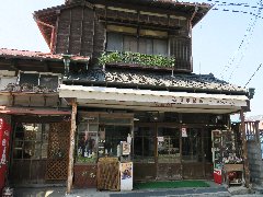 | 鎌倉の八雲神社、厄除け祈願と書かれたのぼりが並んでいます。 | 八雲神社、ひっそりとしています。 | 古そうな木造の渋い酒屋さんです。 | 鎌倉、「べつばらドーナツ」の店内。 |