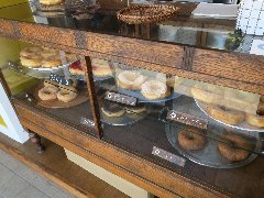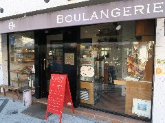 | 逗子のパン屋、「E.S.」の外観。 | 「E.S.」のパン。美味しそう。 | 逗子、「支那そば哉」の支那そば、あっさり醤油ラーメンです。 | 逗子、「モーモーズ」の朝しぼりミルクソフト。関口牧場の牛乳で作るそうです。 |