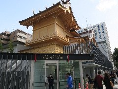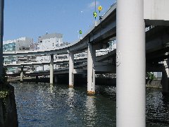 | 日本橋兜町にある兜神社、上には高速道路。東証の守り神? | 日本橋川の上にうねうね交差する江戸橋ジャンクション。 | 水天宮の新社殿、改装中で一切入れません。下はきれいになった交番です。 | 水天宮前、「しばらく」の店内。ラーメン屋とは思えないカウンター。 |