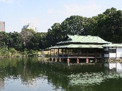 | 清澄庭園の大正記念館。 | 清澄庭園の杏子の花。 | 清澄庭園、きれいに整備された日本庭園です。 | 清澄庭園、三菱財閥創業者の岩崎弥太郎が買い取って整備したそうです。 |