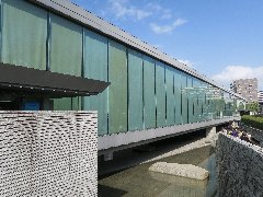| 清澄庭園のシンボル、涼亭。池の上に建っています。 | 清澄庭園の寒緋桜、もうほとんど散っています。 | 東京都現代美術館の外観@、ピクサー展のせいか凄い行列でした。 | 東京都現代美術館の外観A、さすがに並びません。 |
