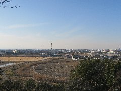 丸墓山古墳の頂上からの景色A (遠くに忍城が見えます) |