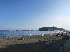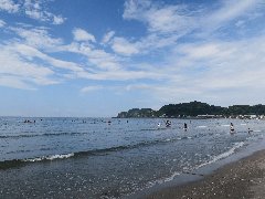 由比ヶ浜の景色A (曇り予報のせいか空いています) |