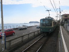鎌倉高校前駅から景色 (海と江ノ島と江ノ電) |
