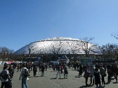 駅のすぐ近くの西武ドーム (オープン戦があるようで混雑) |
