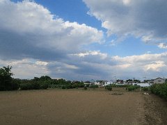 秋津駅に向かう道の畑 (雲が多くなってきました) |