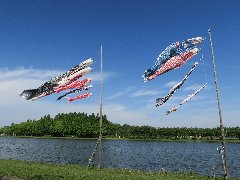 水元公園の景色K (小合溜とこいのぼり) |
