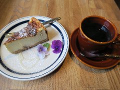 「カフェ・ハクタ」の コーヒーとゴルゴンゾーラのチーズケーキ |