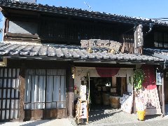 犬山、「山田五平餅店」の外観 (古い建物です) |