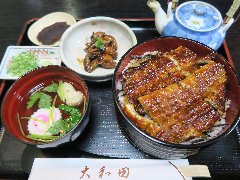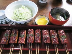 「大和田」の櫃まぶしと鰻のきも焼き (間違いない) |