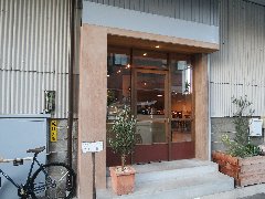 犬山、「壽俵屋 犬山庵」の外観 (漬物屋の奥にカフェがあります) |