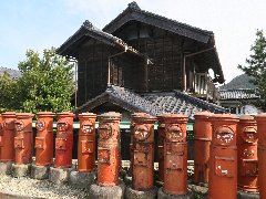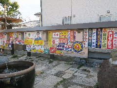 元越生酒造の敷地の怪しいオブジェ | 元越生酒造のホーロー看板 |