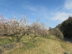 越生梅林の敷地の外の梅林 (陽が傾いてきました) |
