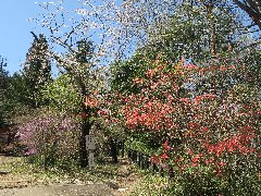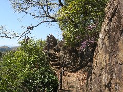 天覧山の山道B (途中の広場に紫と赤のツツジ) |