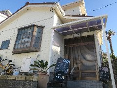 逗子市、「カフェ シエスタ」の外観 (車では行けません) |