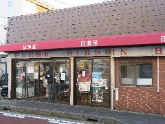 鎌倉、「日進堂」の外観 (レトロなパン屋です) |
