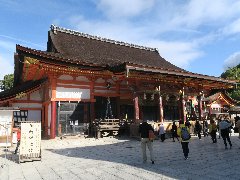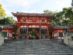 八坂神社の西楼門 (四条通りの正面にあります) |