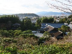銀閣寺、裏山の展望所からの景色 (吉田山の向こうは京都御所) |