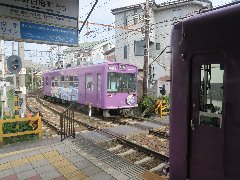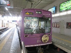 京福嵐山本線の大宮駅 (通称嵐電、紫色の電車) |