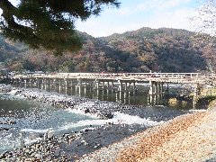 嵐山、渡月橋 (木製かと思ったら普通の橋なんですね) |