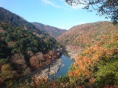 桂川嵐峡の遊覧船 (船頭さんの人力です) |