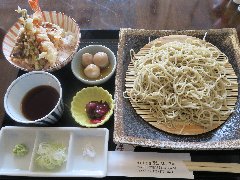 「芳汕」のミニ天丼セット (美味しい蕎麦です) |