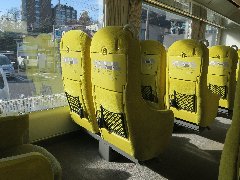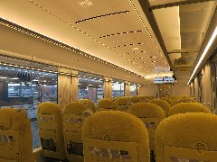 特急ラビューの車内 (大きな窓と黄色い座席) |