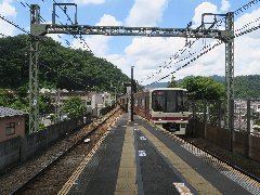 清滝駅のホーム (オリンピックラッピングです) |