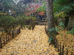 安国論寺の境内 (銀杏の絨毯になっていました) |