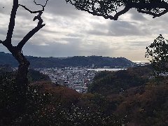 お猿畠の大切岸からの景色 (逗子の街が見えます) |