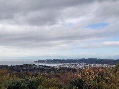 浄明寺緑地パノラマ台の景色 (鎌倉の街と由比ガ浜が見えます) |
