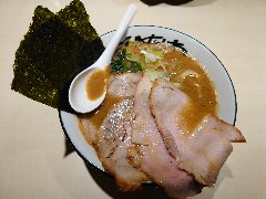 「地鶏豚骨ひなわ」のハーフチャーシューめん (チャーシューがでかい) |