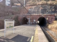 田浦駅、上り側のトンネル (レンガ造りで渋いです) |