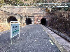 田浦駅、下り側のトンネル (七釜トンネル、3つ並んでます) |