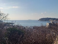 <後書き>田浦の梅林、昔から聞いたことはあったのですがスルーしていました。かなりマイナーで空いてるだろうし、丁度咲くころかなと初めて行ってみました。まだ梅は3部咲きくらいでしたが山の上の広がる梅林からは海が見えて景色がよかったです。見頃にはもっていい景色が見られるかもしれません。ついでに逗子にも寄ってみました。蘆花記念公園にある逗子八景の1つ、桜山の晴嵐からは江の島が見えました。でもちょっと寂れていましてどこまでが公園なの分からない感じでした。最後に逗子の海岸で冬の海を満喫して帰りました。春を感じるのにちょうどいい散歩でした。 |