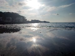 逗子海岸の景色A (砂浜に水が溜まって反射しています) |